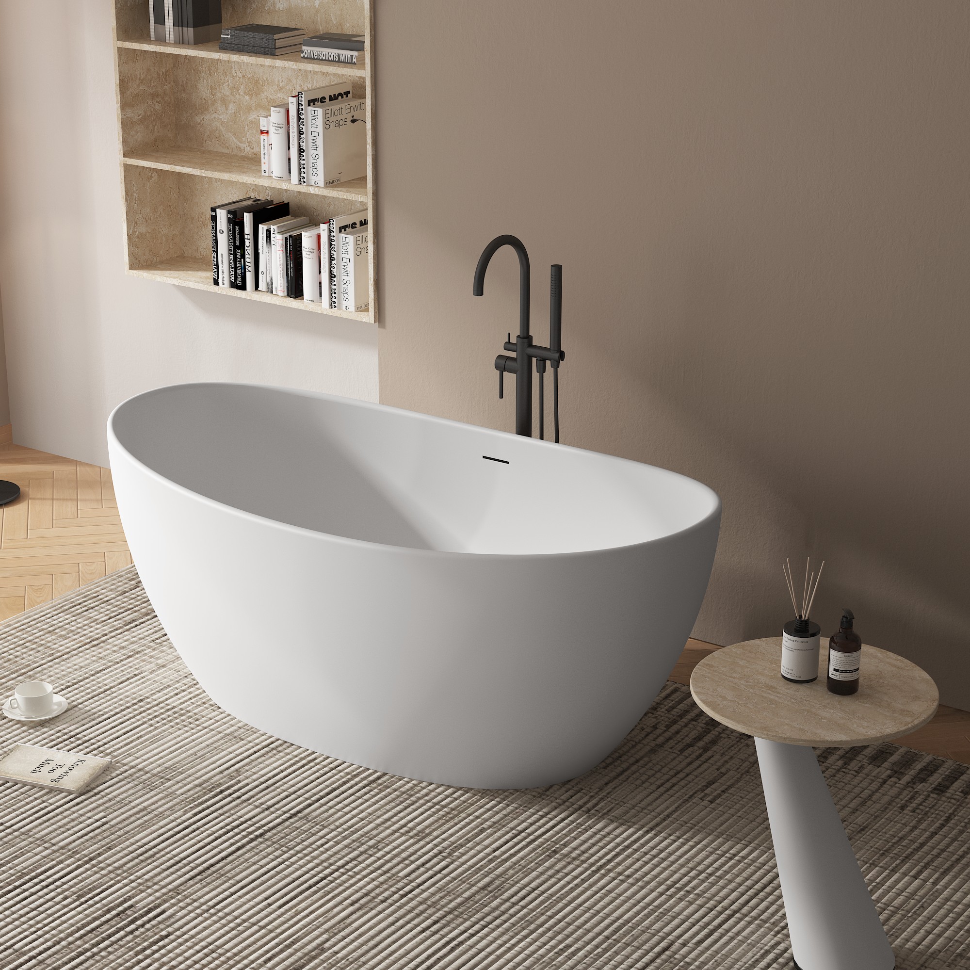 Crafted from a homogeneous, non-porous solid surface material, these American Standard bathtubs feature a sleek, organic oval silhouette with gracefully curved sides that evoke the timeless elegance of classic freestanding designs, while the seamless one-piece construction eliminates seams and crevices for a modern, monolithic look. Whether paired with a matte black floor-mounted faucet in a warm, neutral-toned bathroom (as showcased in our imagery) or a polished chrome fixture in a minimalist space, the tub’s velvety matte finish exudes understated luxury. The deep, ergonomically contoured interior provides full-body immersion, turning every bath into a private spa retreat.