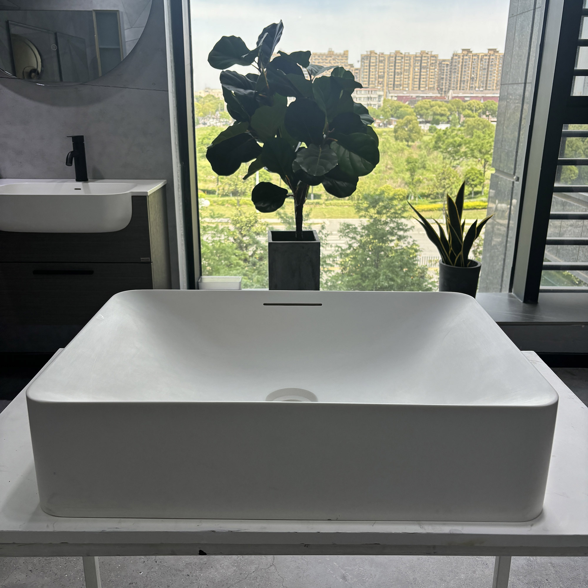 Cohesive Bathroom Suite: Designed to perfectly match our square bathtubs, this basin creates a unified, high-end aesthetic that ties the entire bathroom space together. The matching shape and material ensure a seamless, luxurious look that is both visually striking and functionally cohesive.