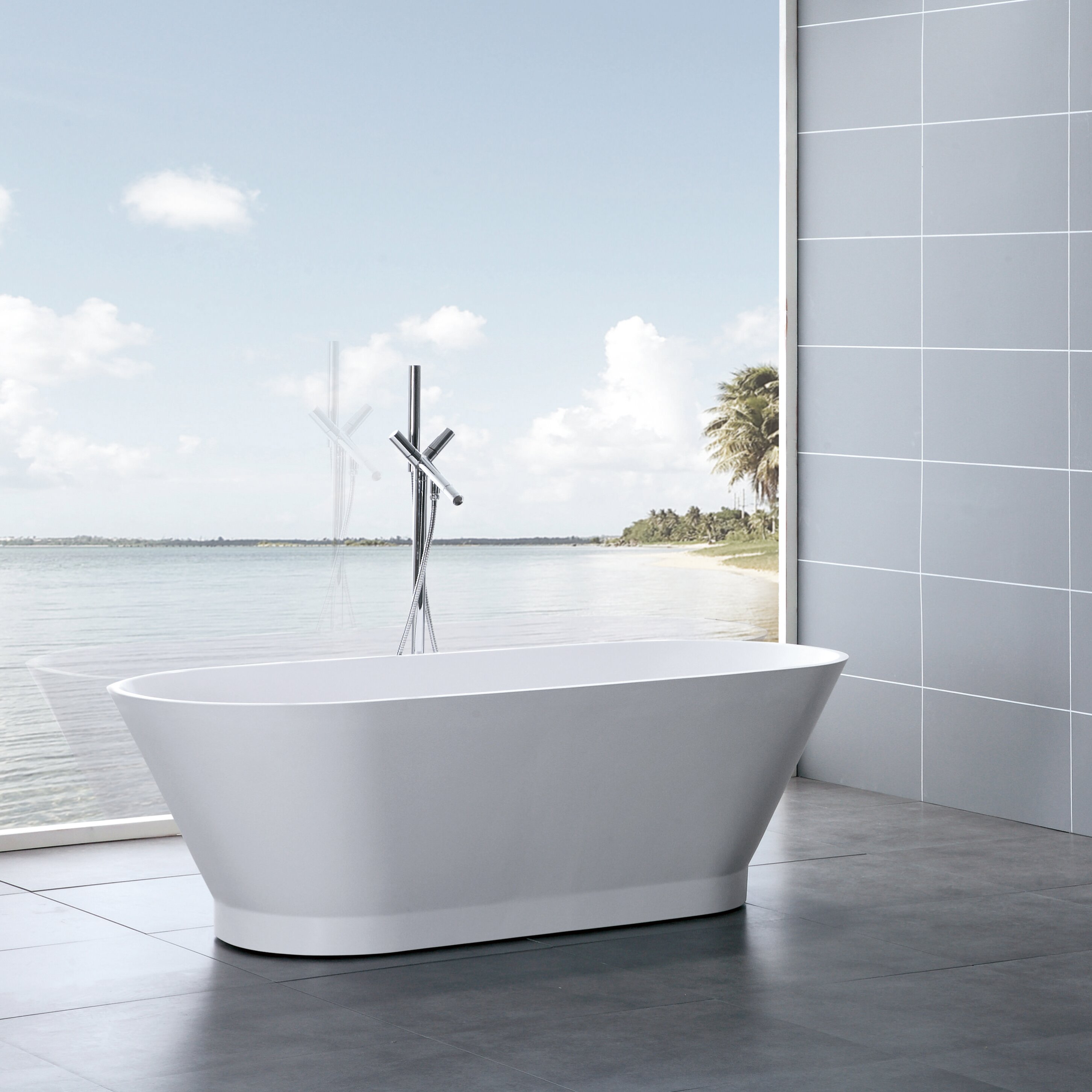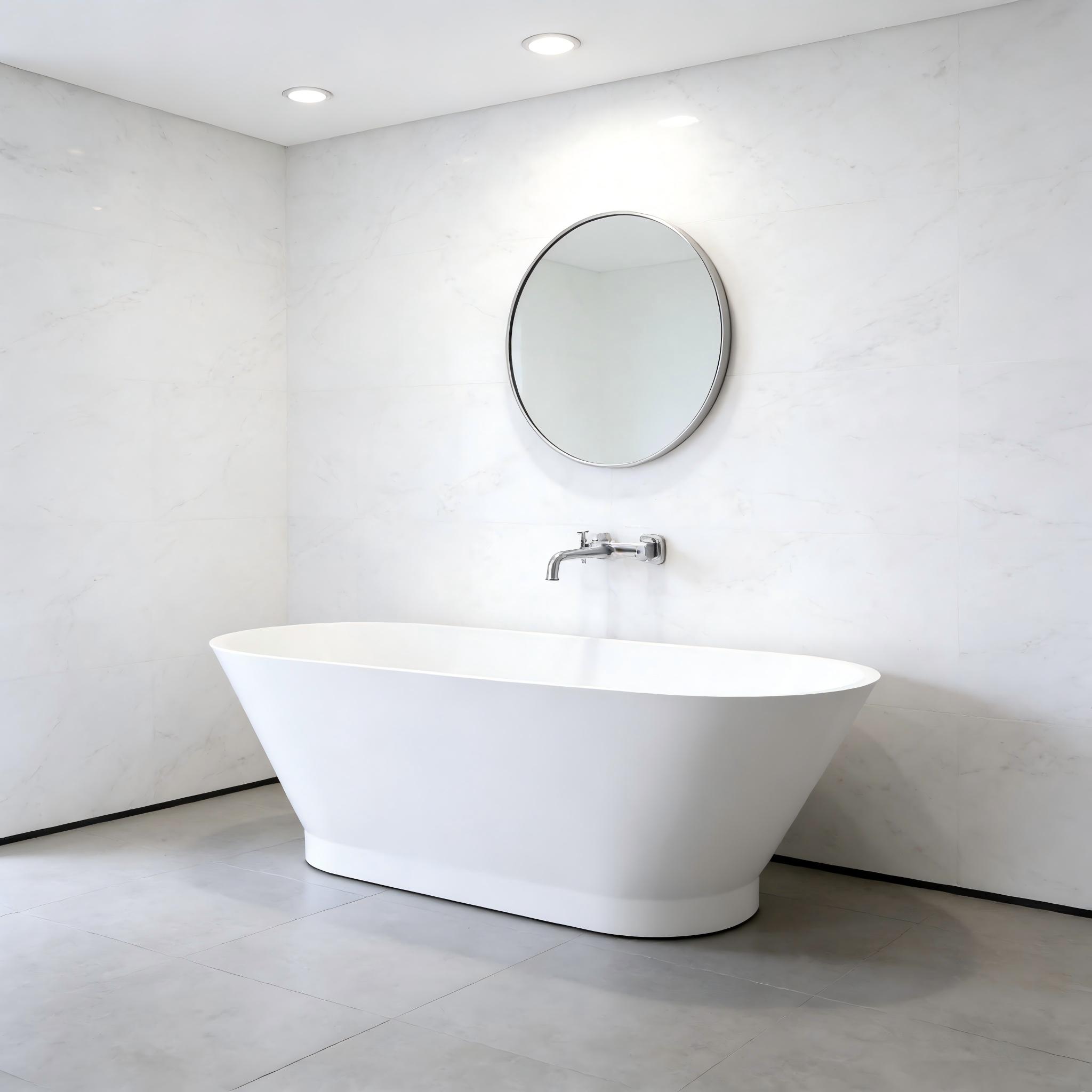 Timeless, Versatile Design: The elegant, curved form transcends trends, pairing effortlessly with modern fixtures like brass or chrome floor-mounted faucets, neutral color palettes, and statement lighting to create a serene, spa-like atmosphere.