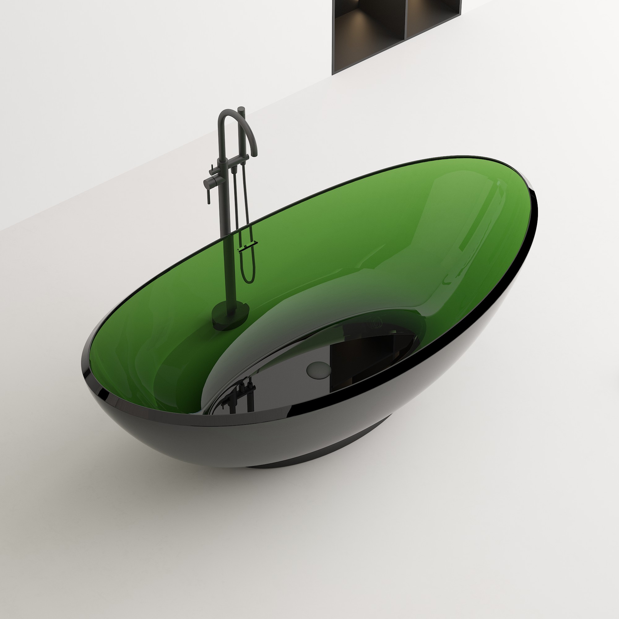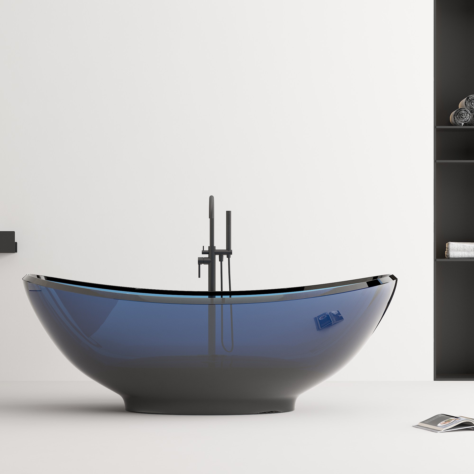 Crafted from a homogeneous, non-porous solid crystal composite, our clear bathtub features a seamless, organic oval shape with clean, flowing lines. The deep, ergonomically contoured interior provides full-body immersion, while the lightweight yet sturdy construction simplifies installation, making it ideal for both new builds and renovations. Available in a range of stunning translucent finishes—from vivid ocean blue and rich emerald green to deep smoky gray (as showcased in our imagery)—this tub’s surface captures and refracts light, creating a dynamic, ever-changing appearance that elevates any interior style, from minimalist to industrial-chic.
