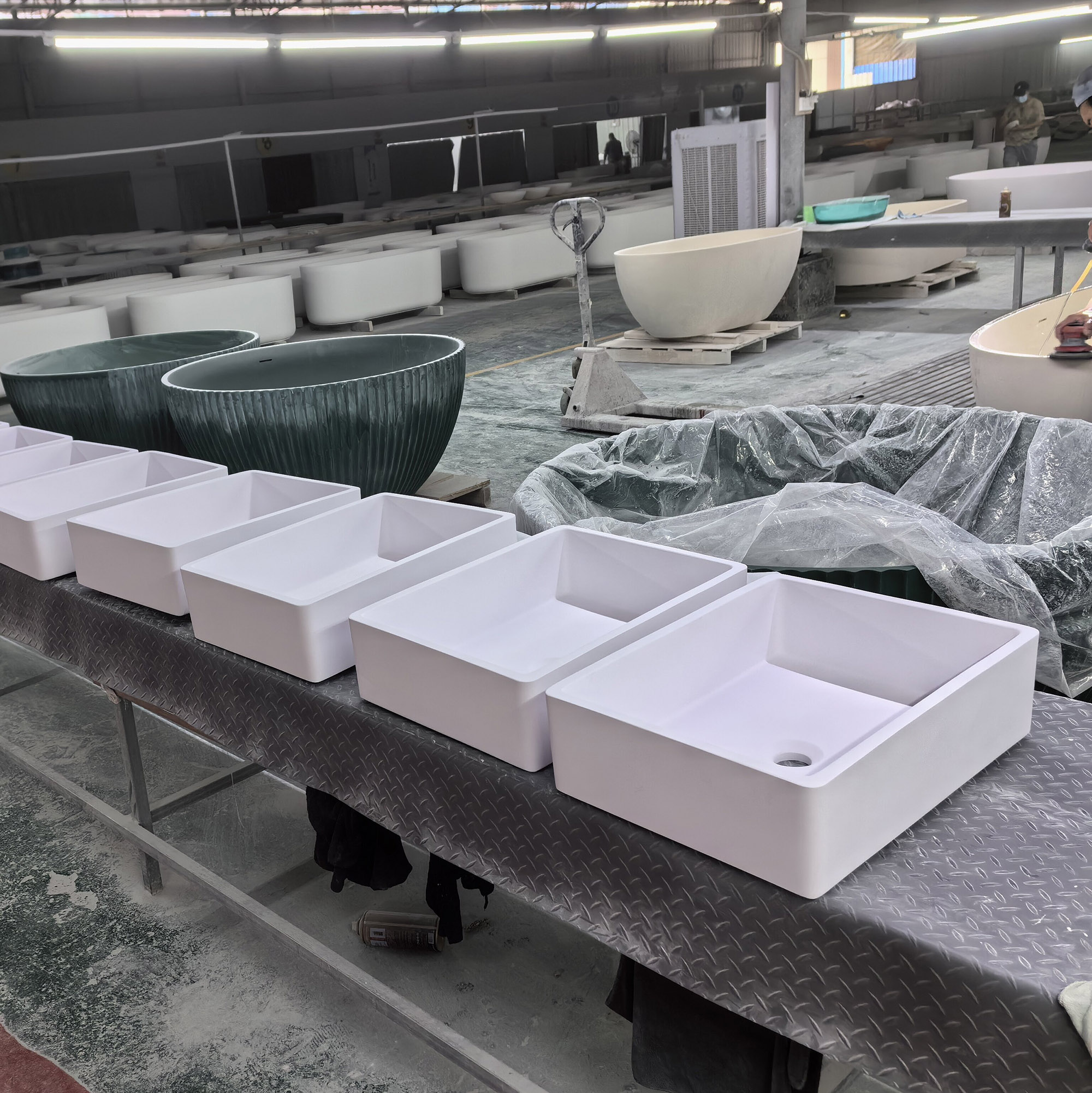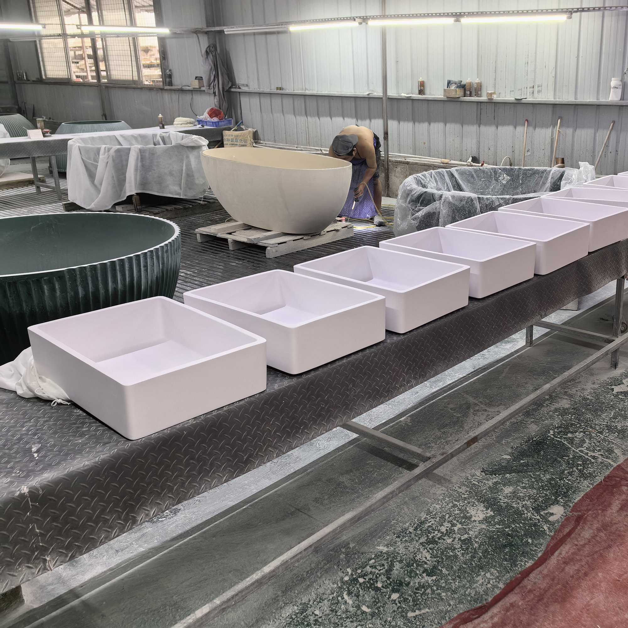 Cohesive Bathroom Suite: Designed to perfectly match our square bathtubs, this basin creates a unified, high-end aesthetic that ties the entire bathroom space together. The matching shape and material ensure a seamless, luxurious look that is both visually striking and functionally cohesive.