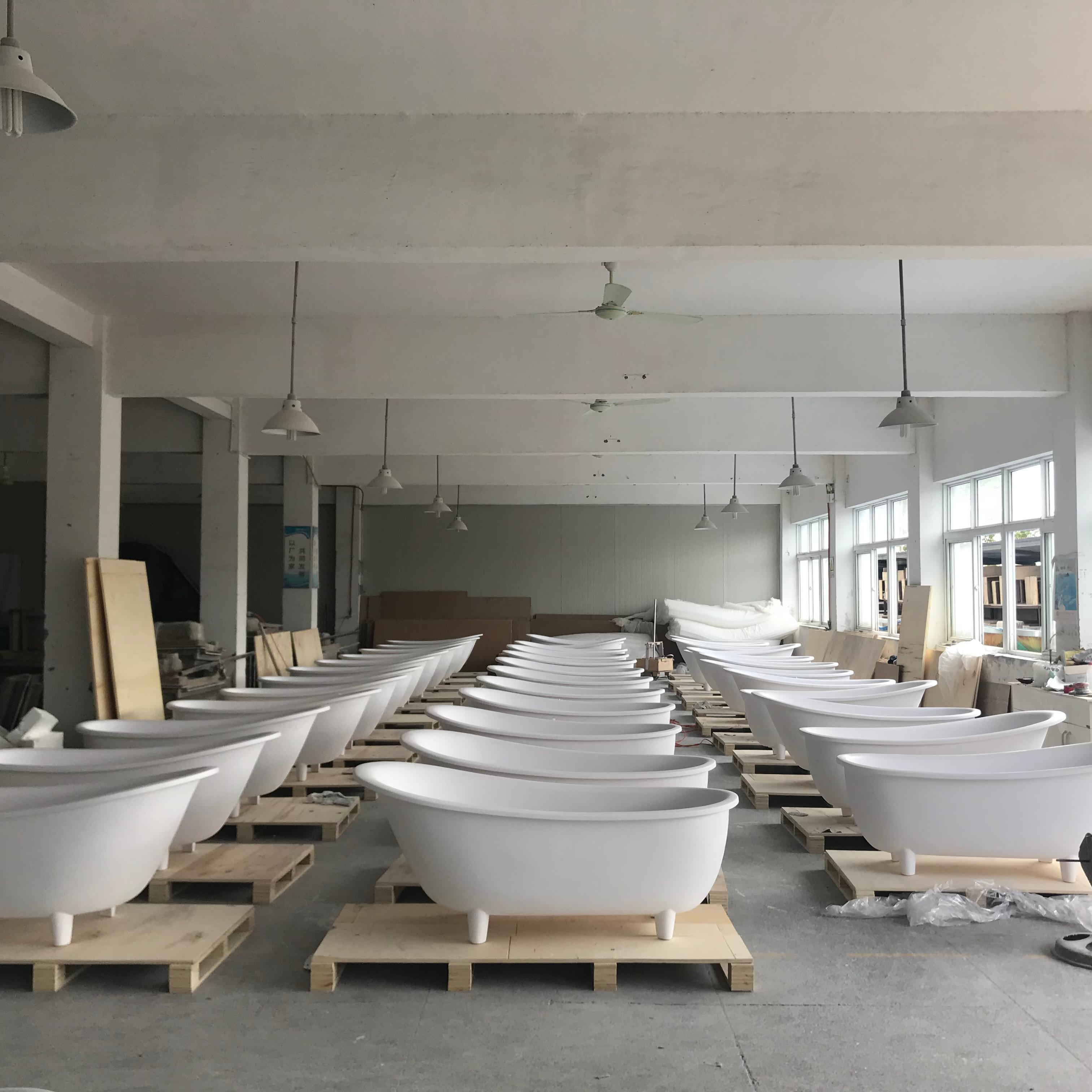 Diese Badewanne mit Klauenfüßen ist in gleichbleibender Fabrikqualität erhältlich (wie auf den Bildern unserer Produktionslinie zu sehen) und so konstruiert, dass sie starker Beanspruchung standhält, was sie zu einer zuverlässigen Wahl sowohl für Wohnrenovierungen als auch für gewerbliche Projekte macht. Ganz gleich, ob Sie ein Architekt sind, der eine historische Restaurierung plant, ein Bauunternehmer, der langlebige Luxusarmaturen beschafft, oder ein Hausbesitzer, der auf der Suche nach einem zeitlosen Badezimmerstil ist, unsere Badewanne mit Klauenfüßen aus fester Oberfläche bietet unübertroffenen Charme, Haltbarkeit und Wert.