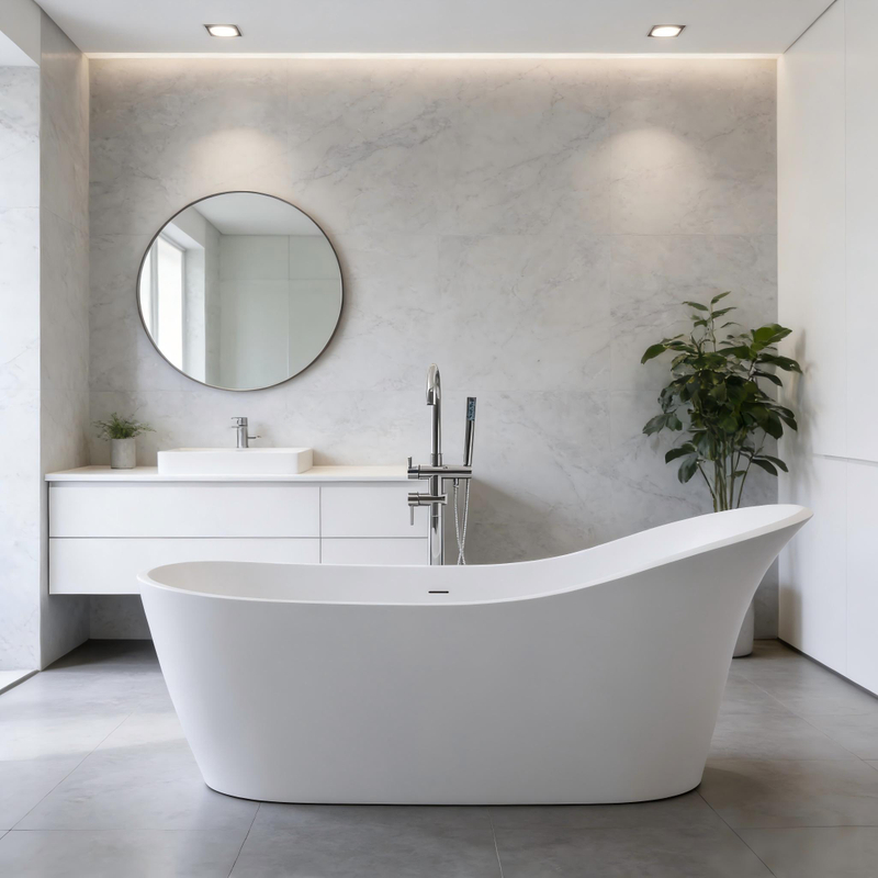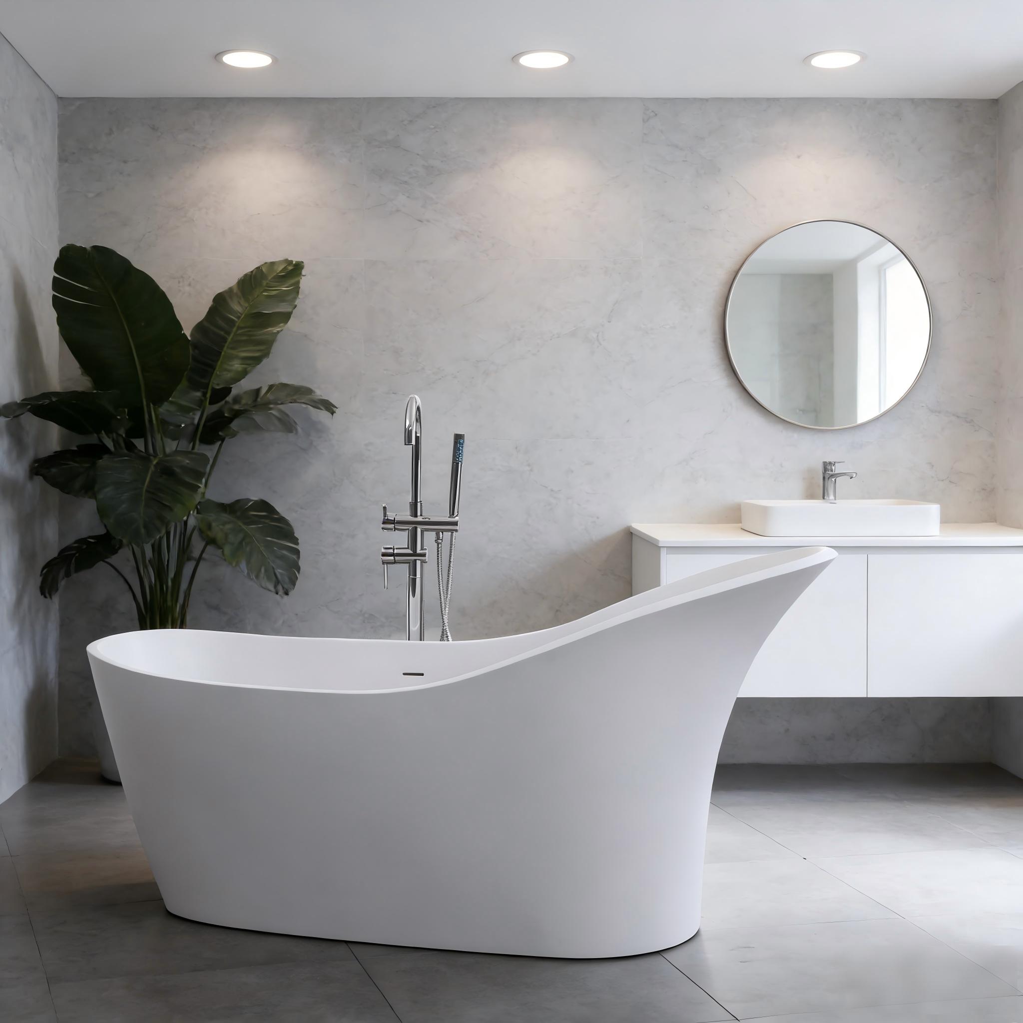 Über ihre Schönheit hinaus bietet diese solide Badewanne ein verwöhnendes Badeerlebnis. Das ergonomische Design bietet ausreichend Platz und Halt, während die hervorragenden Wärmespeichereigenschaften des festen Oberflächenmaterials längeres, entspannenderes Einweichen ermöglichen. Ob Sie ein privates Refugium renovieren oder einen hochwertigen Gewerberaum wie ein Hotel oder Spa ausstatten, unsere solide Badewanne ist die ultimative Wahl für alle, die Qualität, Stil und dauerhaften Wert verlangen.
