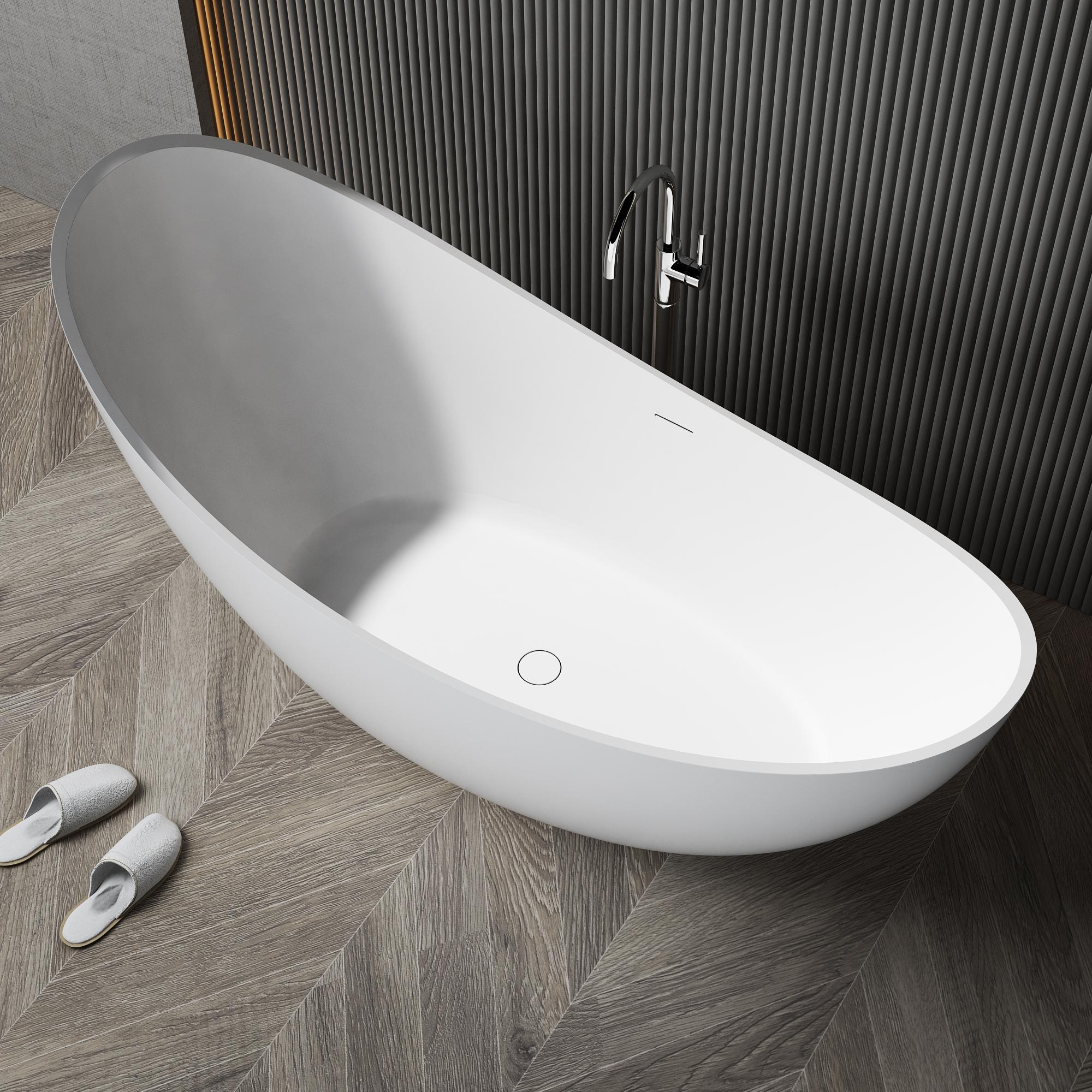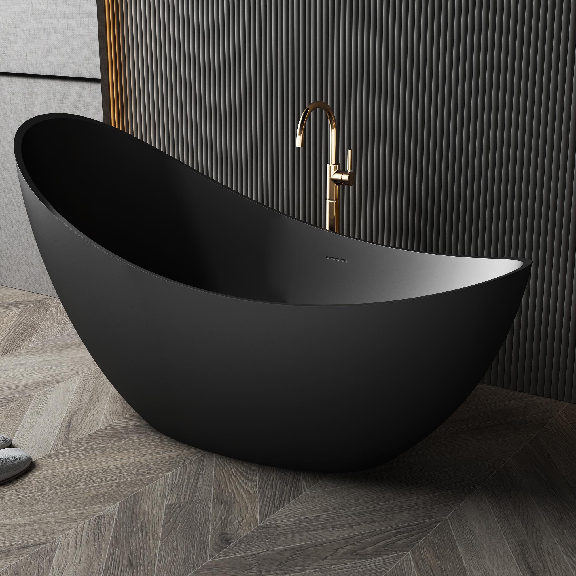 Crafted from a homogeneous, non-porous solid surface, our deep bathtubs boast a seamless, velvety matte finish that resists stains, scratches, and mold, ensuring a pristine look for decades. The deep, ergonomically contoured interior cradles the body, while the lightweight yet sturdy construction simplifies installation, making it ideal for both new builds and renovations. Whether finished in classic white, modern black, or paired with chrome or gold floor-mounted faucets (as showcased in our imagery), the tub’s bold lines complement any interior style, from minimalist to industrial-chic.