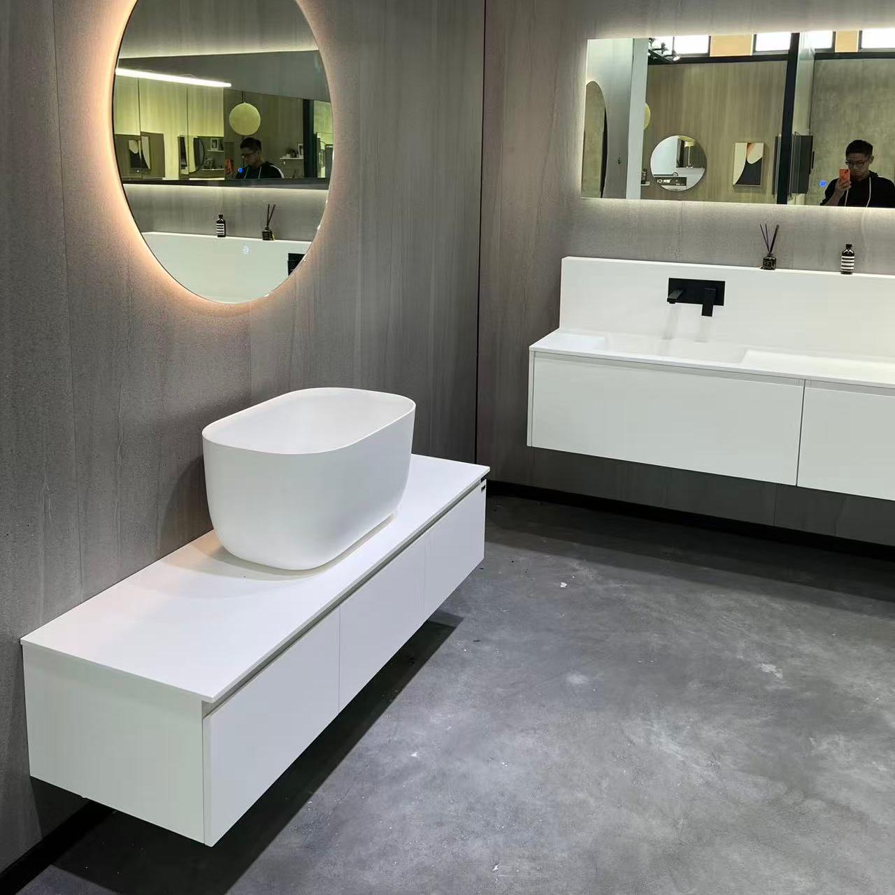 Premium Composite Solid Stone Construction: Crafted from high-grade composite solid stone, this basin offers exceptional durability, resistance to scratches, stains, and heat, ensuring a like-new appearance for decades. The non-porous surface is hygienic and easy to clean, making it ideal for high-traffic bathrooms.