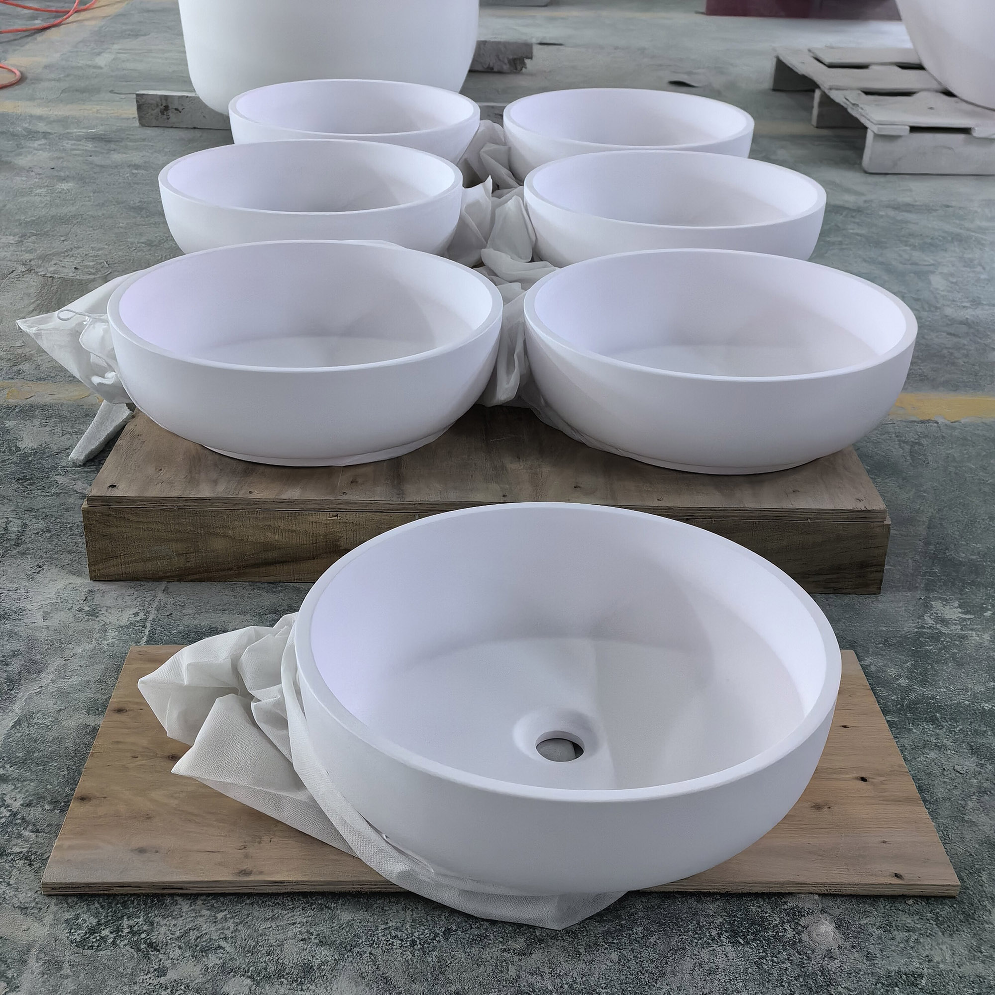 Cohesive Bathroom Suite: Designed to perfectly match our round bathtubs, this basin creates a unified, high-end aesthetic that ties the entire bathroom space together. The matching shape and material ensure a seamless, luxurious look that is both visually striking and functionally cohesive.