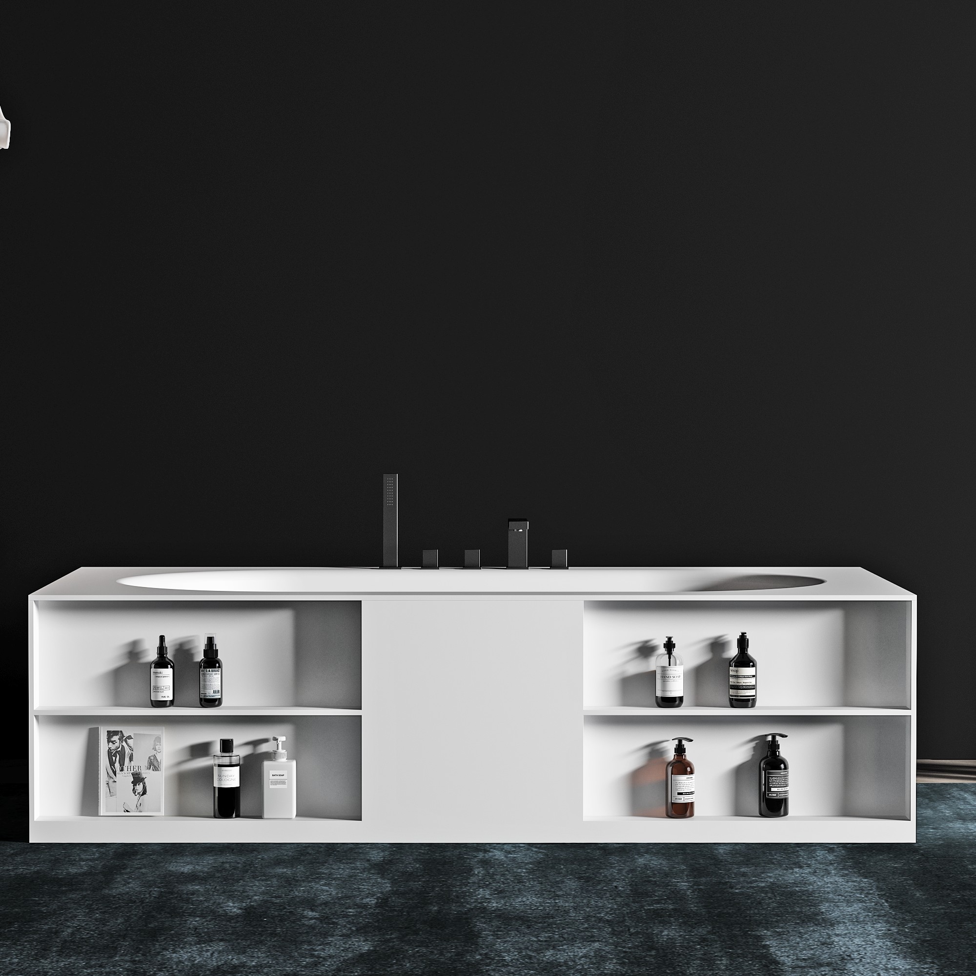 Realizzate con un materiale a superficie solida omogeneo e non poroso, le nostre vasche da bagno sono progettate per superare sotto ogni aspetto le tradizionali alternative in acrilico, ghisa e porcellana. La struttura monopezzo senza giunture elimina giunture e fessure, creando un look elegante e monolitico che si adatta a qualsiasi stile di interni contemporaneo, dagli spazi minimalisti con pareti bianche ai bagni lunatici con accenti scuri (come mostrato nelle nostre immagini). L'interno profondo ed ergonomicamente sagomato offre un'immersione completa del corpo, trasformando ogni bagno in un momento di relax e ringiovanimento.