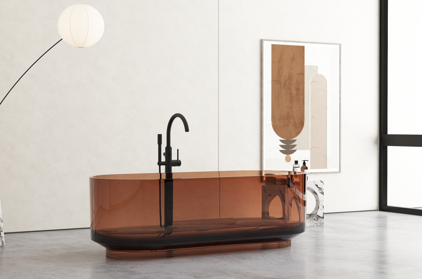 This transparent freestanding bathtub is crafted from premium resin stone reowned for its durability, and beauty. Designed to resist scratches and stains, this luxurious standalone tub maintains its flawless appearance, ensuring a timeless centerpeice for your bathroom. The sophisticated, transparent design allows natural light to create an illusion of spaciousness, enhancing any bathroom's ambiance. Available in eight colors, you can find the perfect match to reflect your unique style and transform your bathroom into a modern luxury haven. Elevate your bathroom with this exquisite freestanding bathtub, a bold statement piece combining functionality and asethetic appeal.