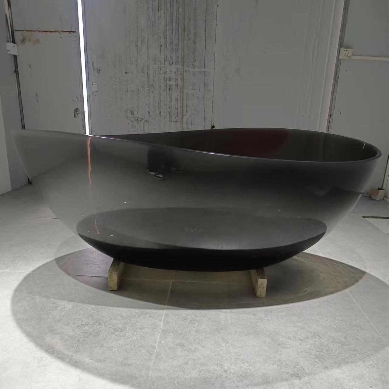 Crafted from a solid resin composite stone, our freestanding resin bathtubs feature sleek, organic silhouettes with clean, flowing lines (showcased in warm amber and deep smoky black translucent finishes in our imagery). The deep, ergonomically contoured interiors provide full-body immersion, while the lightweight yet robust construction simplifies installation, making them ideal for both new builds and renovations. What truly sets these bathtubs apart is their unmatched versatility: