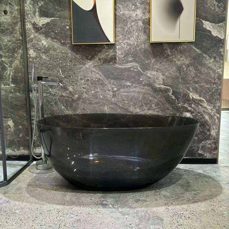 Crafted from a resin composite stone material, our freestanding bathtub features a sleek, organic round silhouette with clean, flowing lines. The deep, ergonomically contoured interior provides full-body immersion, while the lightweight yet robust construction simplifies installation, making it ideal for both new builds and renovations. What truly sets this bathtub apart is its unmatched versatility: