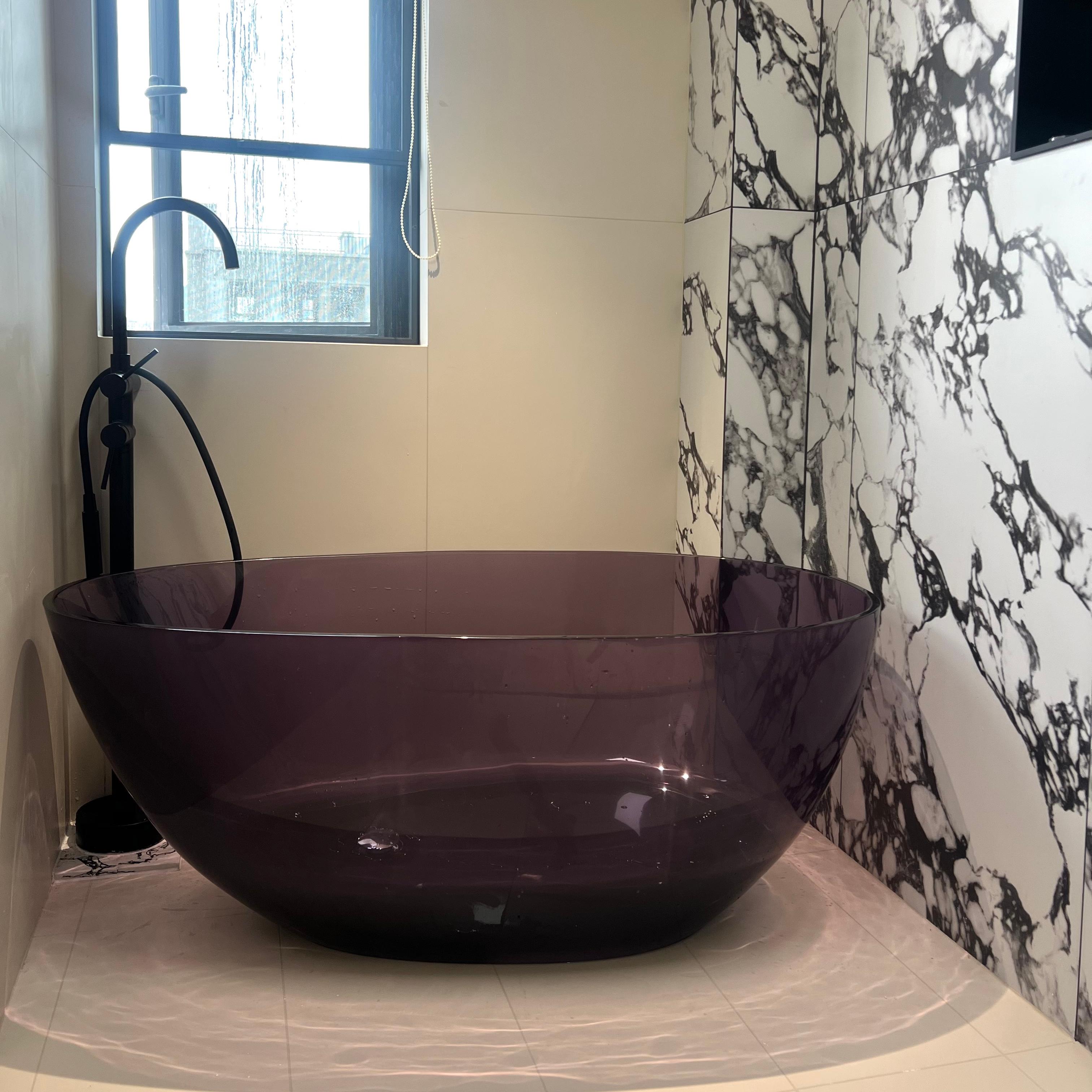 Color Diversity: Offered in a stunning array of translucent finishes—from deep smoky black and rich amethyst purple (as showcased in our imagery) to vivid ruby red, ocean blue, warm amber, and emerald green—with custom Pantone-matched hues available for branded hospitality or one-of-a-kind residential projects.