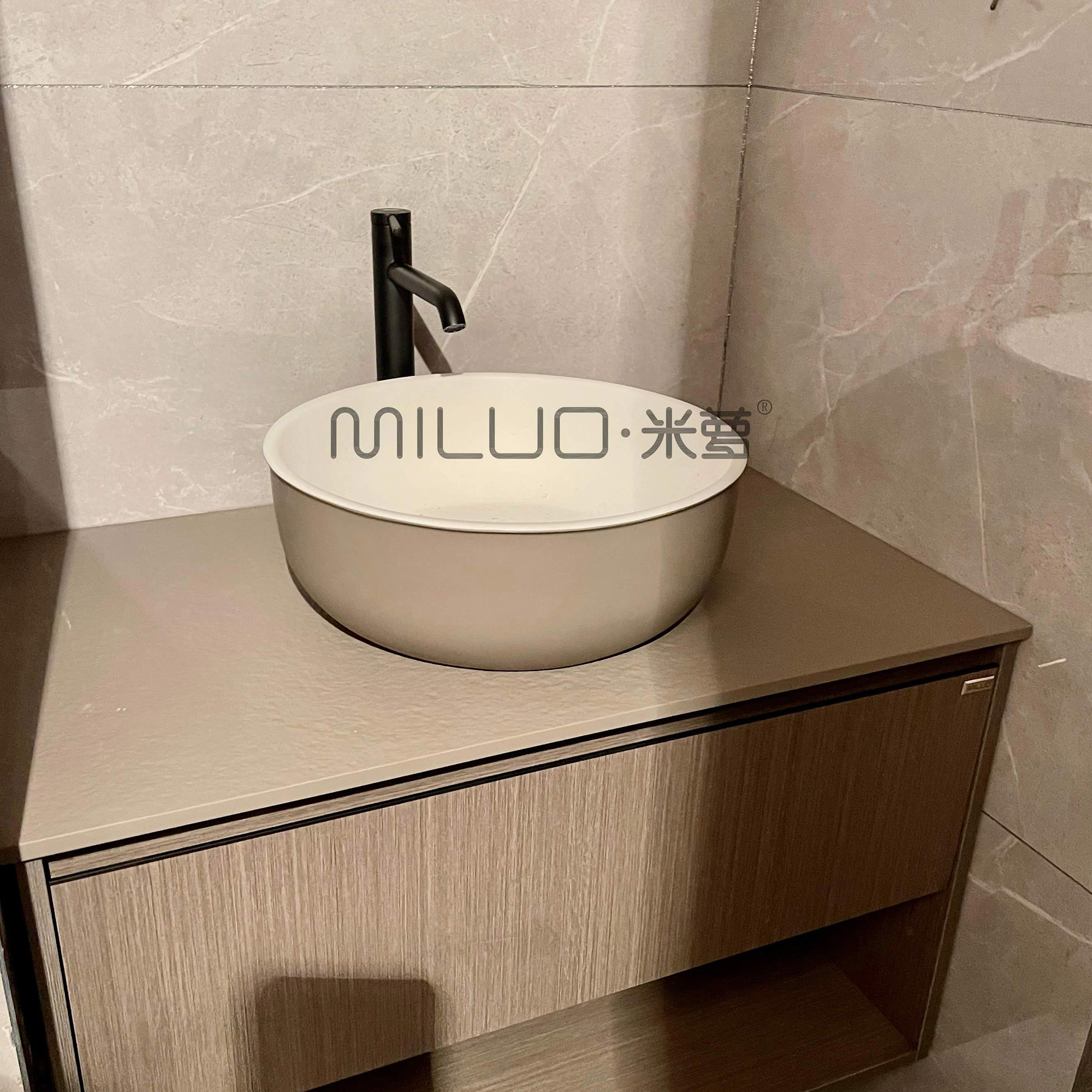 Premium Composite Solid Stone Construction: Crafted from high-grade composite solid stone, this basin offers exceptional durability, resistance to scratches, stains, and heat, ensuring a like-new appearance for decades. The non-porous surface is hygienic and easy to clean, making it ideal for high-traffic bathrooms.