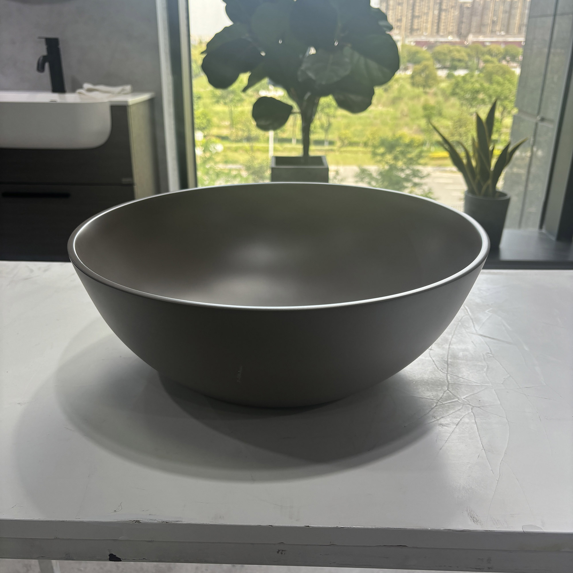 Cohesive Bathroom Suite: Designed to perfectly match our round bathtubs, this basin creates a unified, high-end aesthetic that ties the entire bathroom space together. The matching shape and material ensure a seamless, luxurious look that is both visually striking and functionally cohesive.