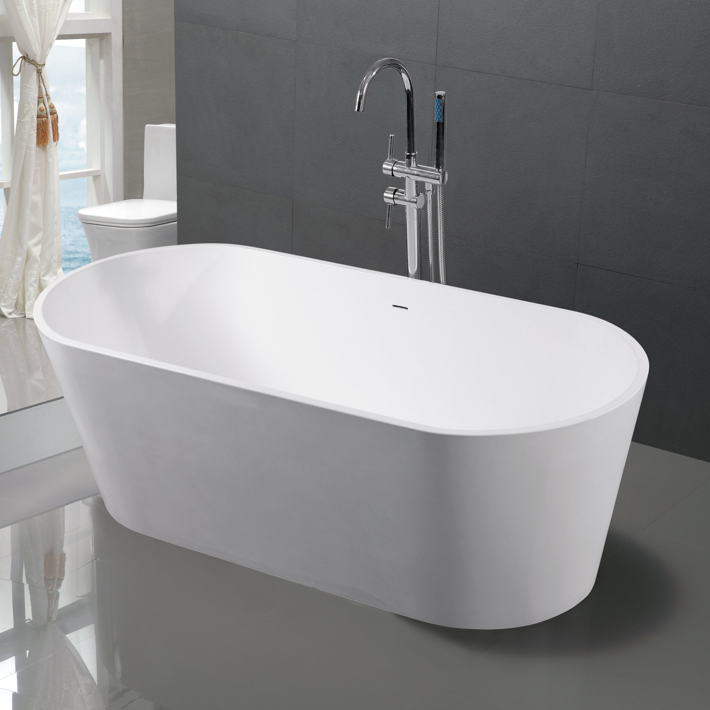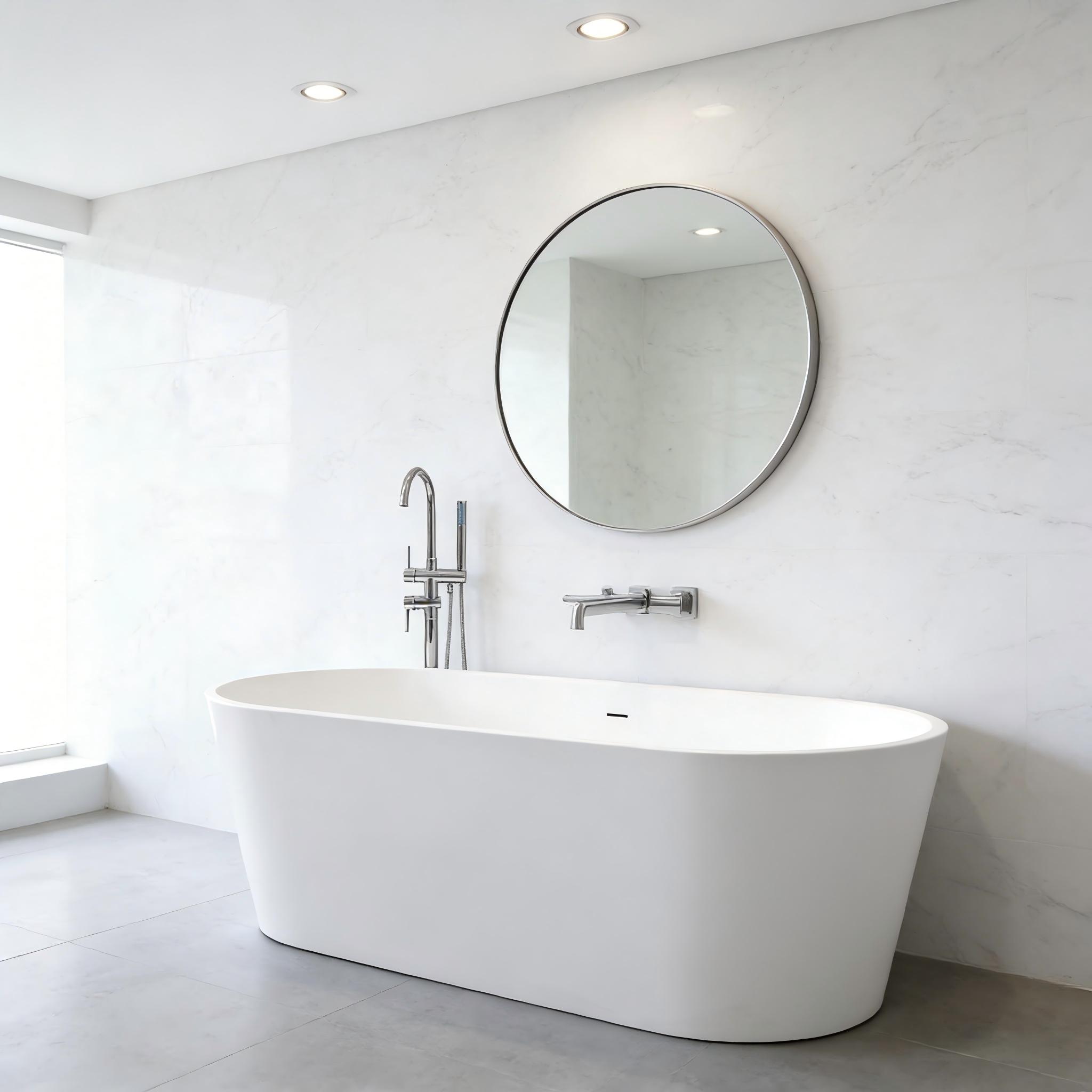 Designed for indulgence, our soaking tub features a generously deep, ergonomically contoured interior that allows for complete submersion—turning every bath into a private spa retreat. Whether you’re unwinding after a long day or creating a tranquil escape in a coastal-inspired bathroom with ocean views, the tub’s sleek, oval silhouette and clean lines complement every modern interior style. It pairs effortlessly with polished chrome floor-mounted faucets, wall-mounted fixtures, or statement brass accents, offering endless design flexibility to match your unique vision.