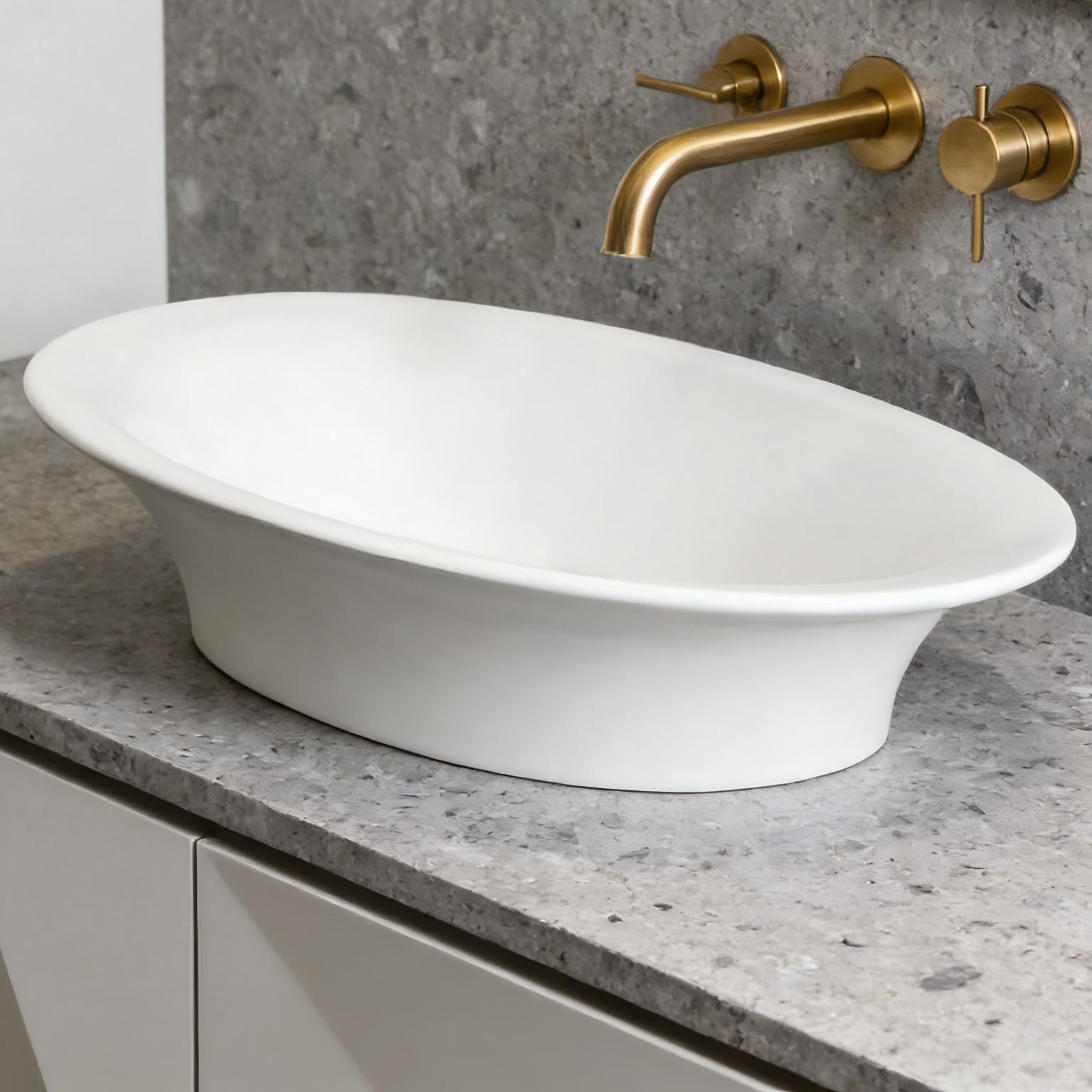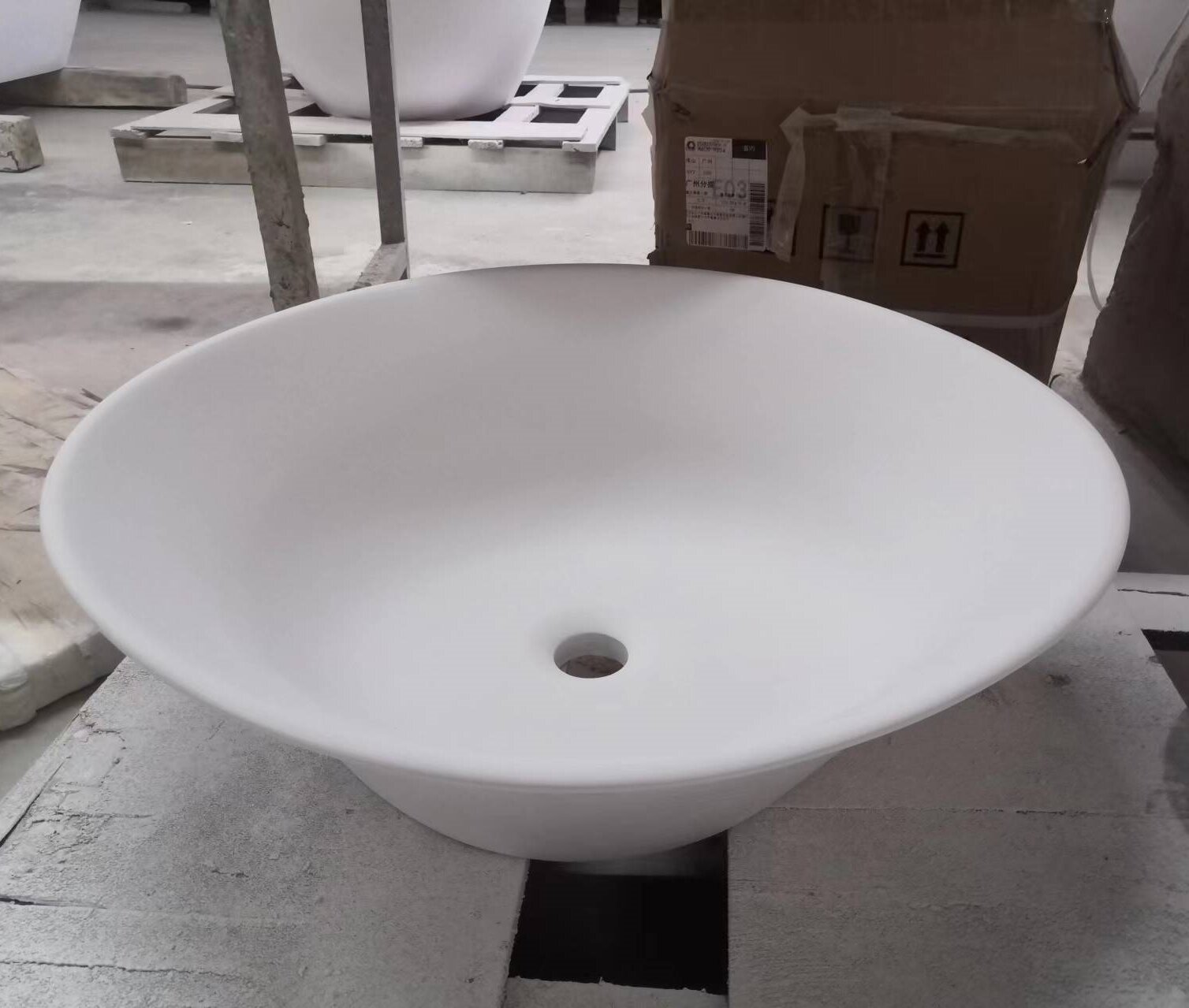 Premium Composite Solid Stone Construction: Crafted from high-grade composite solid stone, this basin offers exceptional durability, resistance to scratches, stains, and heat, ensuring a like-new appearance for decades. The non-porous surface is hygienic and easy to clean, making it ideal for high-traffic bathrooms.