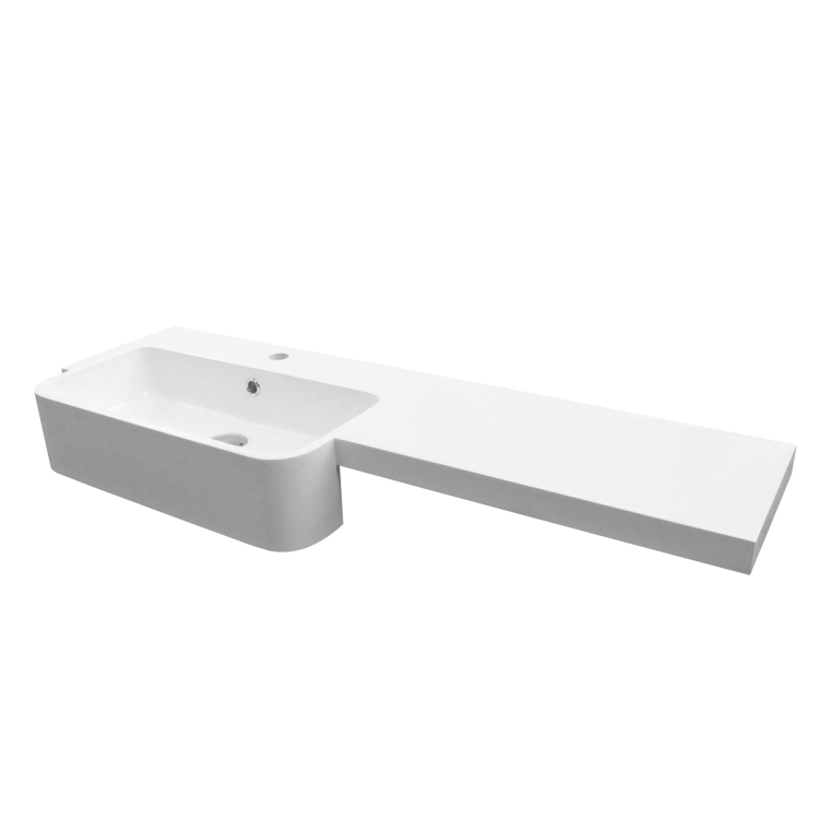 Ideal for Unique Layouts & Large-Scale Projects. Versatile and project-ready, this L-shaped Corian-style basin is perfectly suited for:
