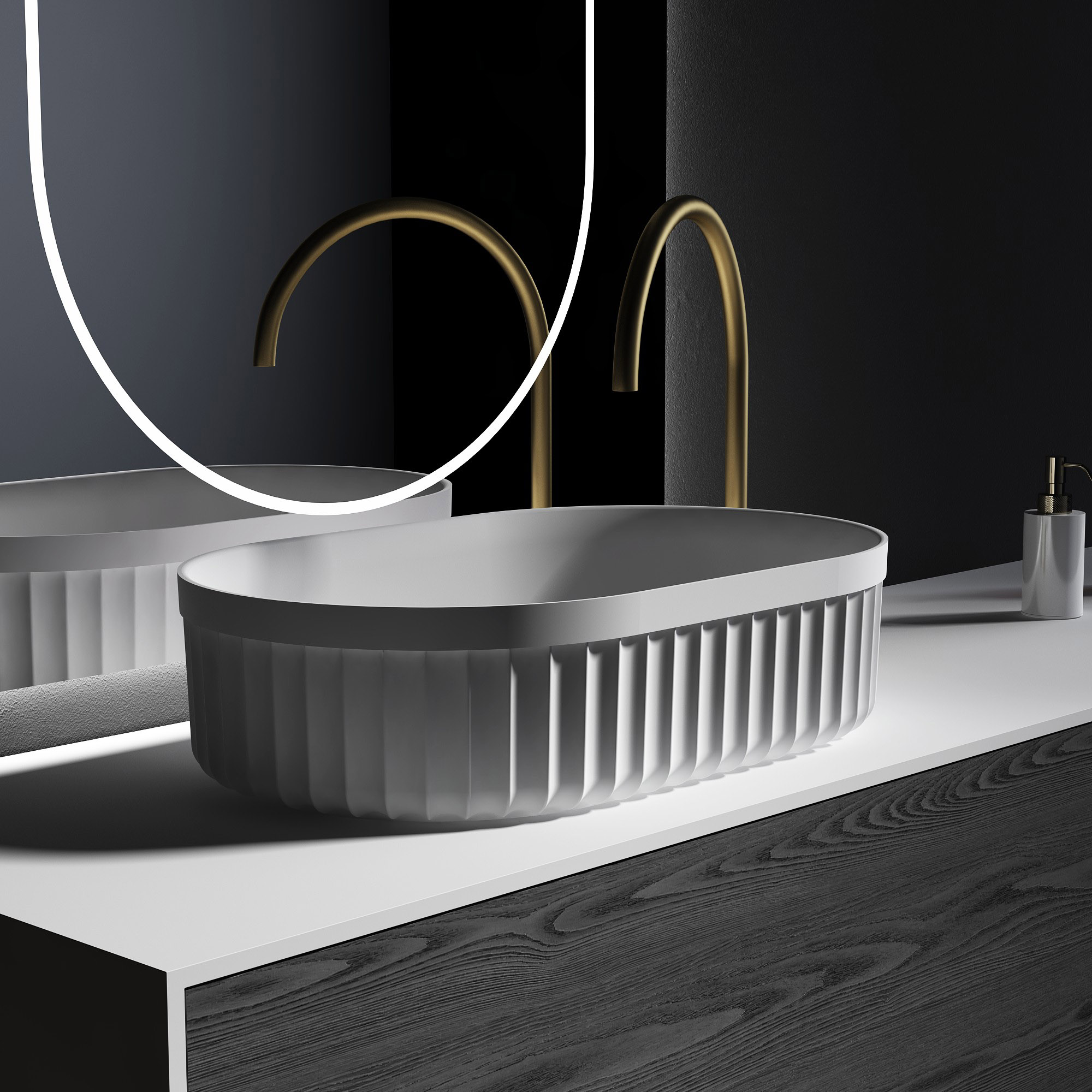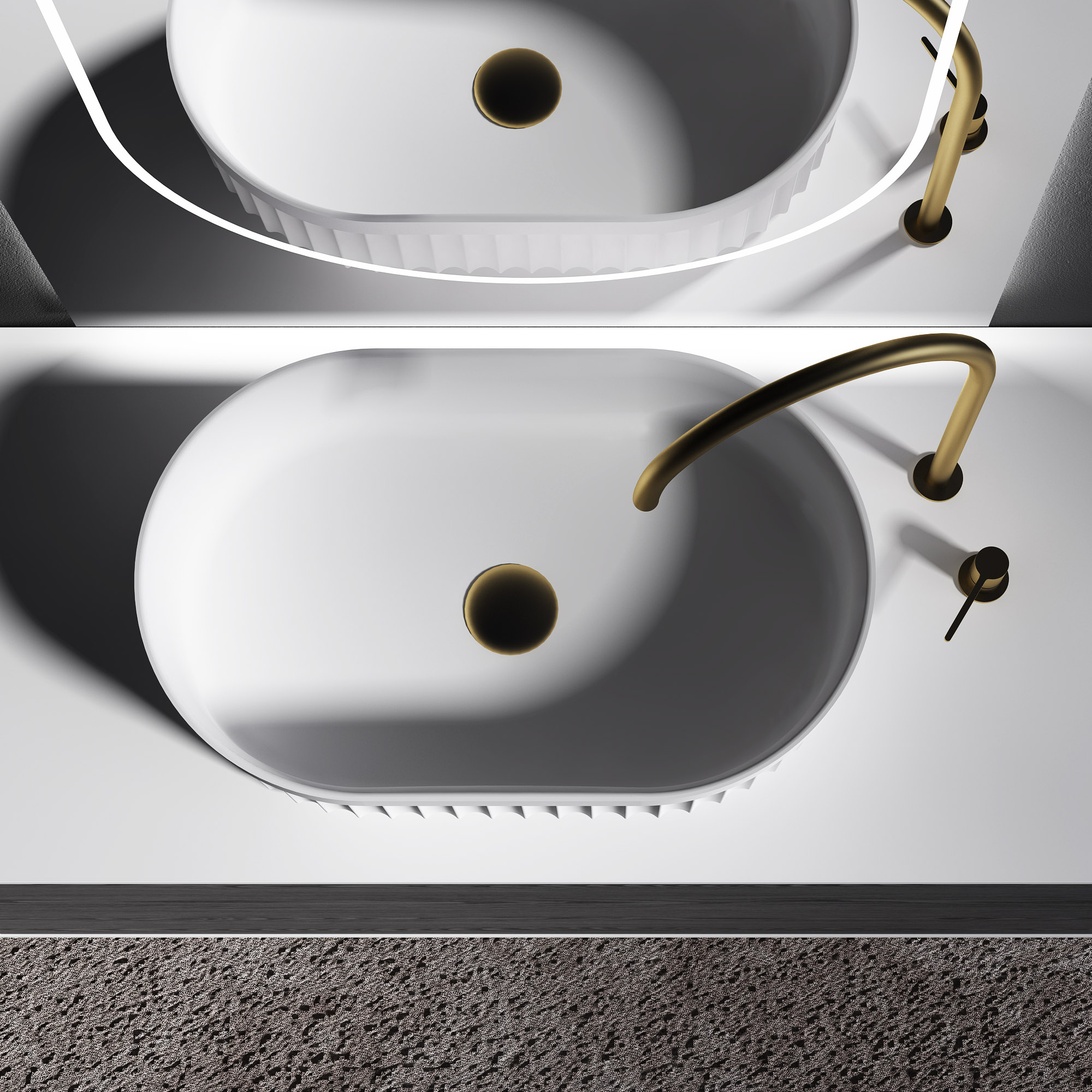 Iconic Fluted Minimalist DesignThe signature vertical ribbed texture on the basin’s exterior creates a striking visual focal point, balancing artistic detail with understated sophistication. Its sleek oval silhouette complements diverse design styles, from modern Scandinavian and industrial chic to luxury transitional bathrooms, making it ideal for high-end residences, boutique hotels, and designer hospitality projects.