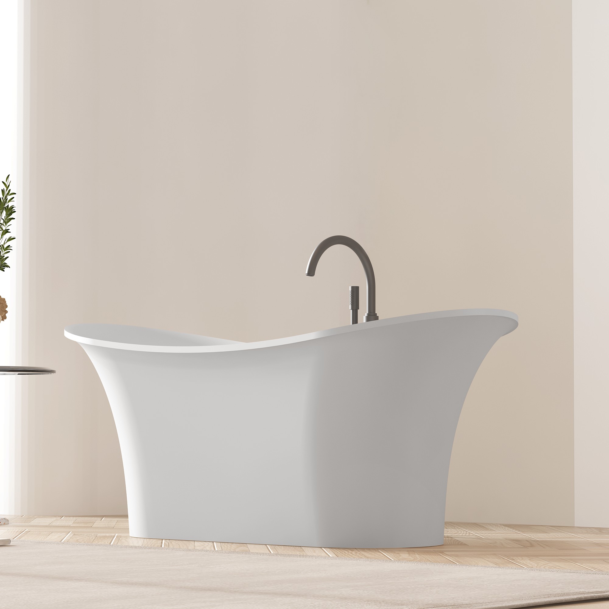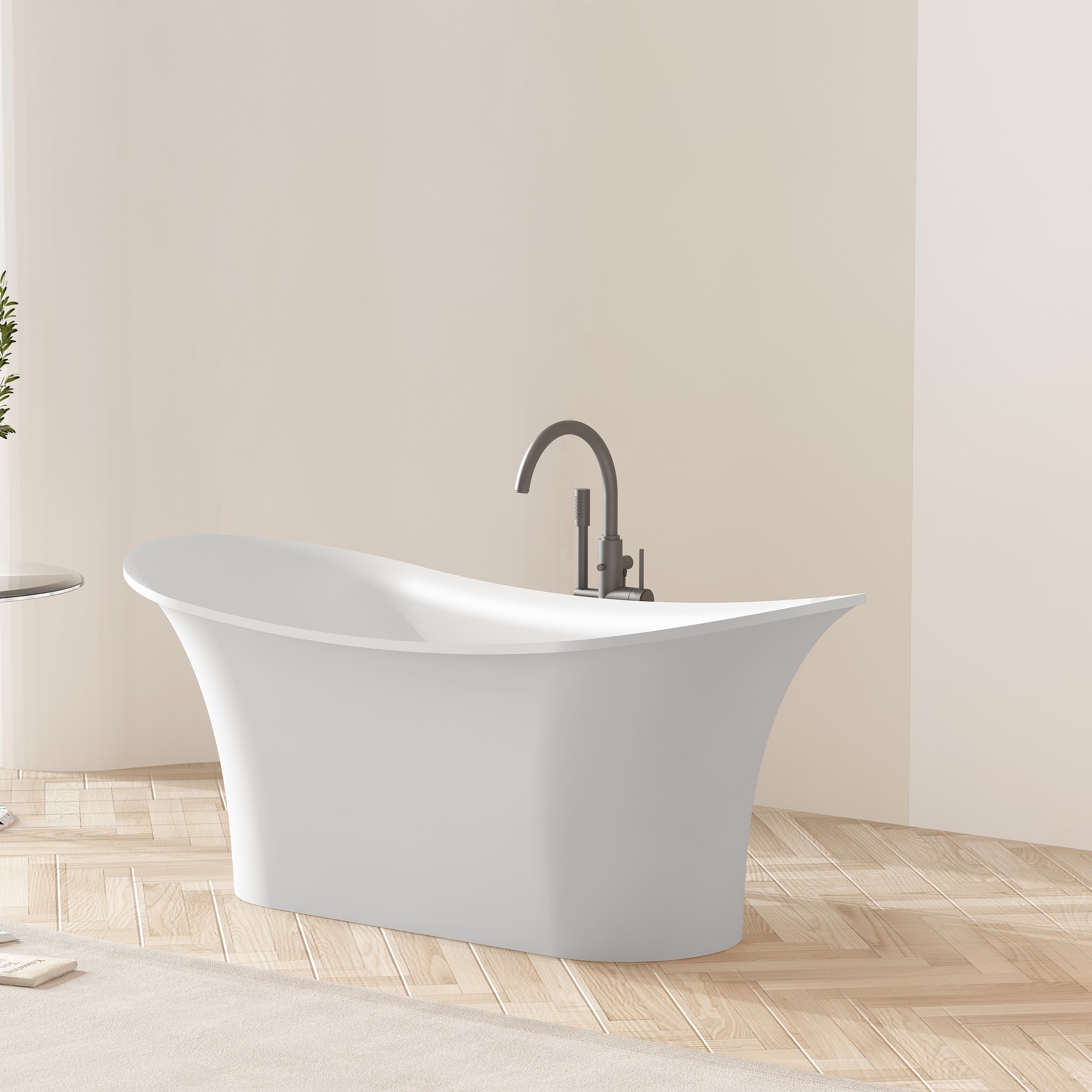 Designed for both nostalgia and comfort, our standalone bathtubs feature gracefully curved bodies, refined rolled rims, and sculpted bases that echo the timeless charm of traditional designs, reimagined for contemporary spaces. The deep, ergonomically contoured interior allows for full-body immersion, turning every bath into a private spa retreat, whether you’re unwinding in a light-filled space with herringbone wood flooring (as showcased in our imagery) or making a bold statement in a minimalist, neutral-toned bathroom. Unlike antique cast iron tubs, our solid surface iterations boast a seamless, one-piece construction that eliminates unsightly seams and crevices, creating a sleek, monolithic look that exudes understated luxury.