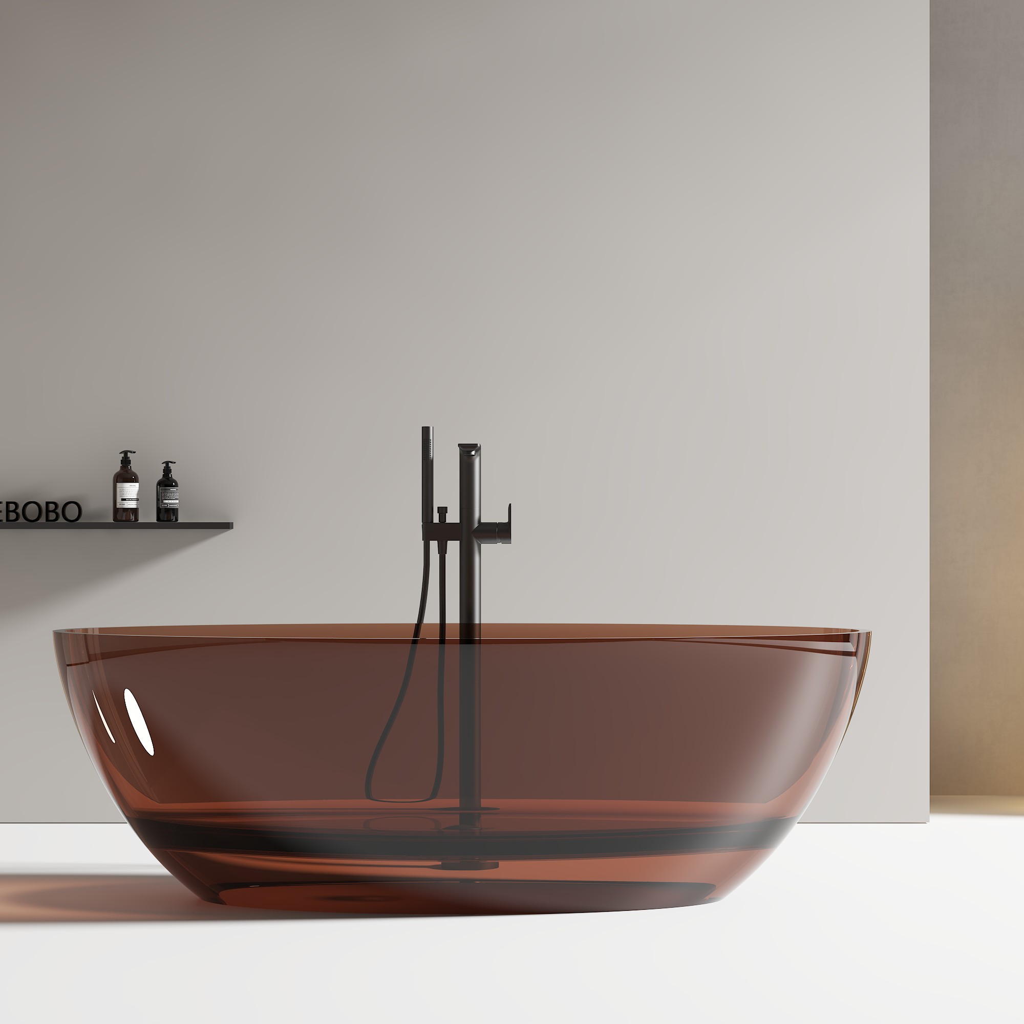 Crafted from a solid resin composite stone material, our bathtub features a seamless, organic round or oval shape with clean, flowing lines. The deep, ergonomically contoured interior provides full-body immersion, while the lightweight yet sturdy construction simplifies installation, making it ideal for both new builds and renovations. Available in a range of stunning translucent finishes—from warm amber and rich smoky gray to deep black (as showcased in our imagery)—this tub’s surface captures and refracts light, creating a dynamic, ever-changing appearance that elevates any interior style.