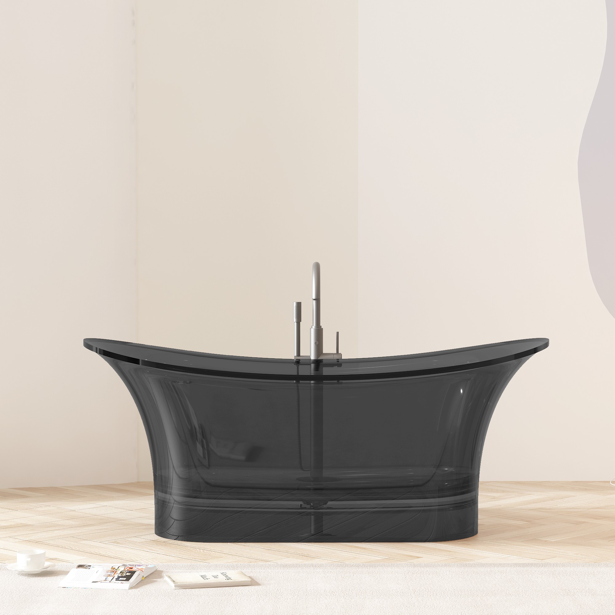 Crafted from a homogeneous, non-porous solid stone resin composite, our freestanding tub features a seamless, organic shape with clean, flowing lines. The deep, ergonomically contoured interior provides full-body immersion, while the lightweight yet sturdy construction simplifies installation, making it ideal for both new builds and renovations. Available in a range of stunning translucent finishes—from warm amber and rich smoky gray to deep black (as showcased in our imagery)—this tub’s surface captures and refracts light, creating a dynamic, ever-changing appearance that elevates any interior style.