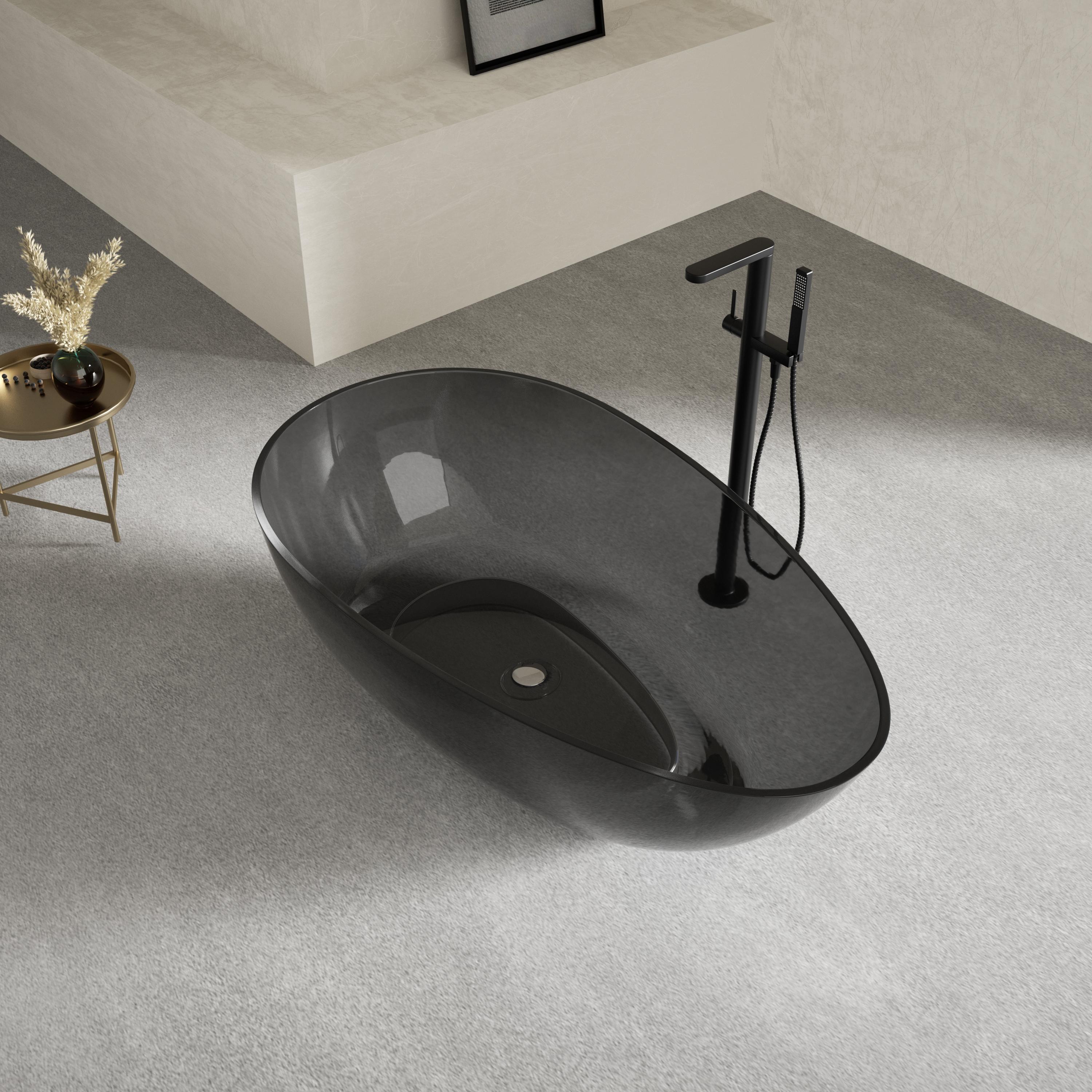 Crafted from a homogeneous, non-porous solid crystal composite, our transparent bathtub features a seamless, organic oval shape with clean, flowing lines. The deep, ergonomically contoured interior provides full-body immersion, while the lightweight yet sturdy construction simplifies installation, making it ideal for both new builds and renovations. Available in a range of stunning finishes—from deep smoky gray and warm amber to vivid ocean blue (as showcased in our imagery)—this tub’s translucent surface captures and refracts light, creating a dynamic, ever-changing appearance that elevates any interior style.