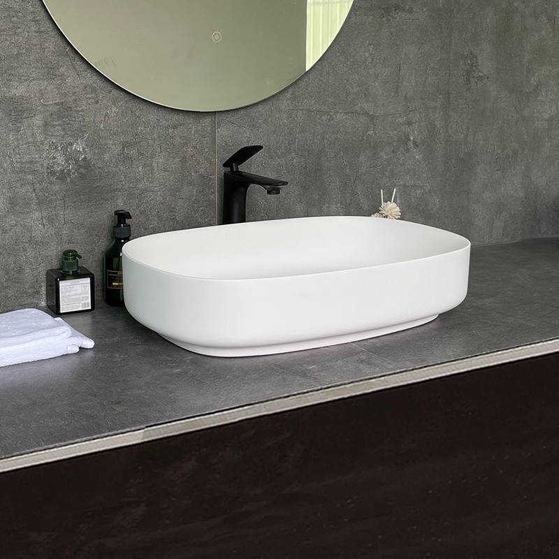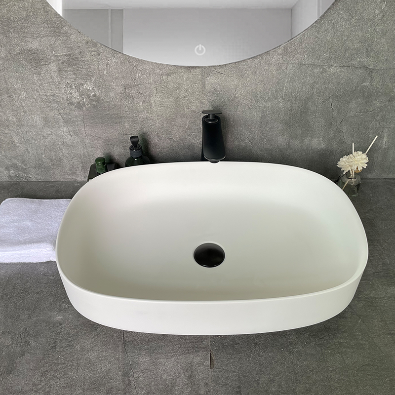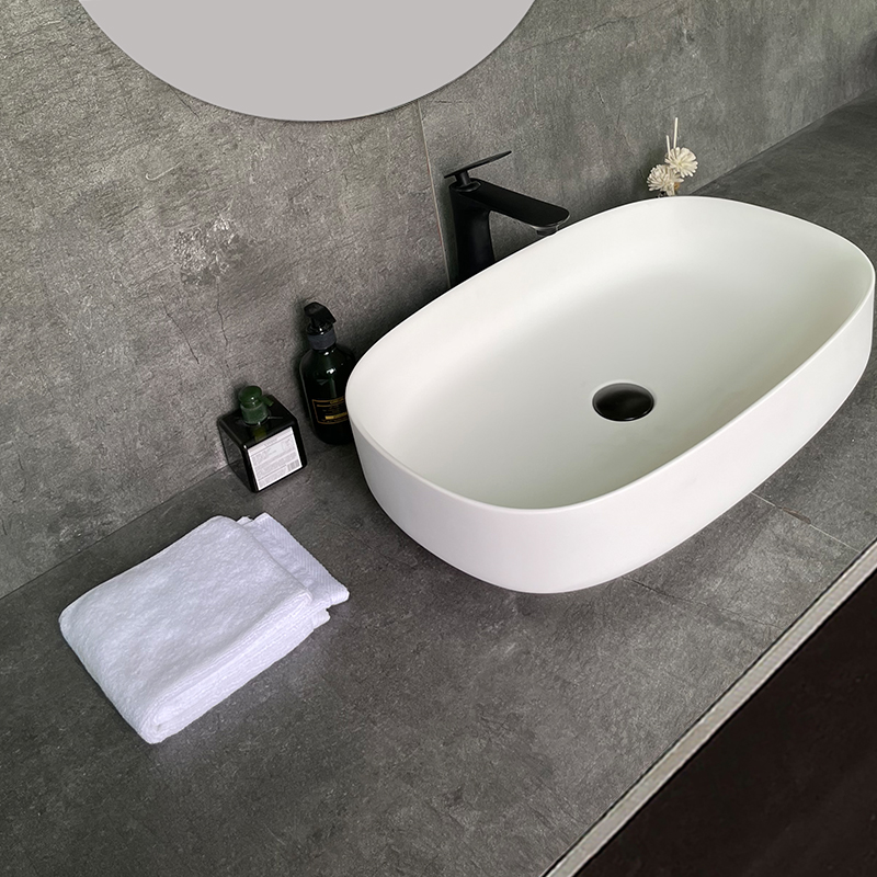Premium Composite Solid Stone Construction: Crafted from high-grade composite solid stone, this basin offers exceptional durability, resistance to scratches, stains, and heat, ensuring a like-new appearance for decades. The non-porous surface is hygienic and easy to clean, making it ideal for high-traffic bathrooms.