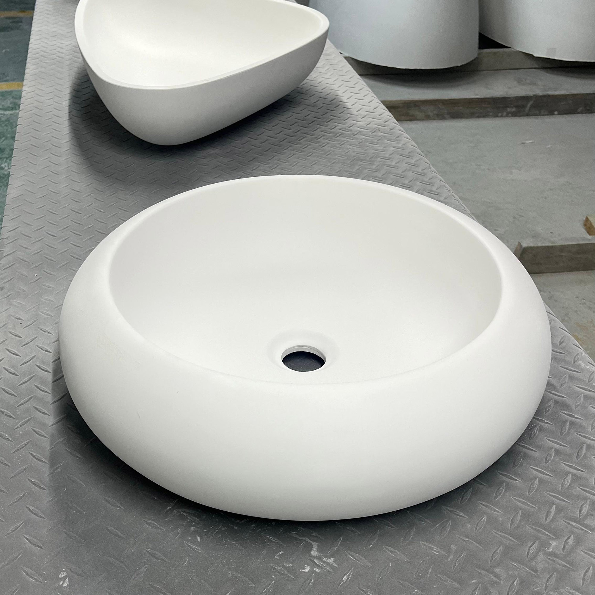 Premium Composite Solid Stone Construction: Crafted from high-grade composite solid stone, this basin offers exceptional durability, resistance to scratches, stains, and heat, ensuring a like-new appearance for decades. The non-porous surface is hygienic and easy to clean, making it ideal for high-traffic bathrooms.